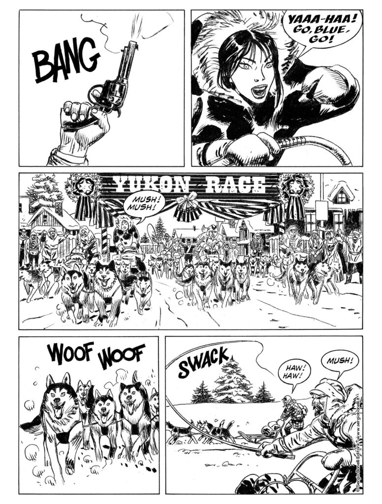 Homer Deveraux, bieco imprenditore e allevatore di cani da slitta, ha indetto la “Yukon Race” una gara da Dawson Creek a Whitehorse… Tra i partecipanti ci sono Gros-Jean, il métis canadese, e la sua figlioccia Dawn… Ma la candida neve della pista, per loro, riserva impreviste e mortali insidie!