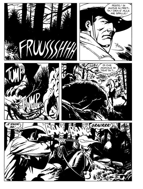 Nel cuore nero della foresta si nasconde un’antica e maligna creatura... Solo l’acqua corrente, da lei temuta, pone al riparo la cittadina di Black Cedars dalla sua furia mortale. Ma quando, a causa di una guerra per i pascoli, il corso del fiume viene deviato, l’orrore si scatena. Tex e un vecchio indiano sono gli unici a tentare di contrastare la violenza selvaggia della bestia!