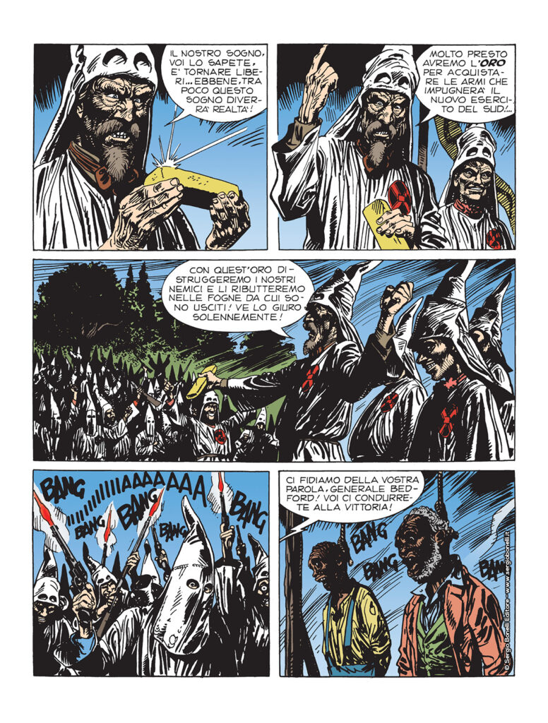 Le indagini sulla morte di Lory Culter proseguono e tutti sospettano del figlio segreto del giudice Atherton, tenuto nascosto in un luogo isolato a causa della sua malattia… Il confederato Buchanan, appoggiato dal Ku Klux Klan, organizza una fuga di prigionieri sudisti, per recuperare trenta casse d'oro nascoste in un vecchio battello corazzato…