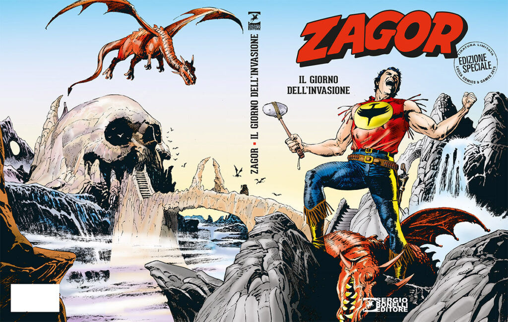Continua lo shoppingLa particolarità di questa edizione variant di Zagor 600 – realizzata in occasione di Lucca Comics & Games 2015 –, oltre alla presenza di 16 pagine in più, che vi porteranno dietro le quinte della lavorazione degli albi (attraverso interviste e approfondimenti, accompagnati da sketch di preparazione delle storie), è una spettacolare copertina che Claudio Villa ha realizzato in esclusiva. Come da tradizione delle Variant proposte in occasione di una fiera, l'immagine si sviluppa orizzontalmente (con un'illustrazione che inizia in copertina e prosegue sulla costa e in quarta).