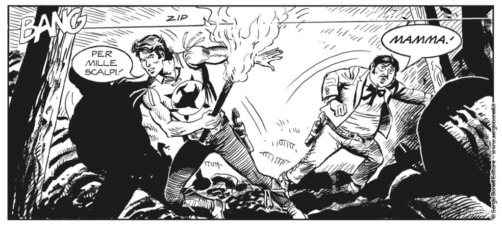 Zagor e Cico raggiungono il villaggio dei minatori tramite una galleria nella montagna sacra agli Oneida, avvisandoli dell'attacco imminente dei rinnegati indiani guidati da Nuvola di Fuoco.