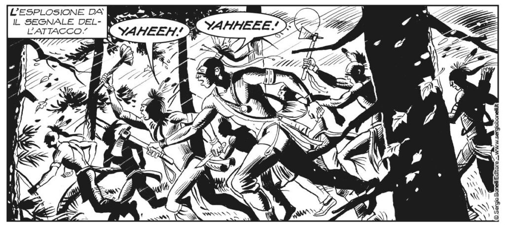 Risalendo la rupe, Zagor e Cico sorprendono gli aggressori e li sottomettono. Nuvola di Fuoco, desideroso di vendetta, affronta Zagor in un nuovo duello, una sfida mortale per lo Spirito con la Scure!