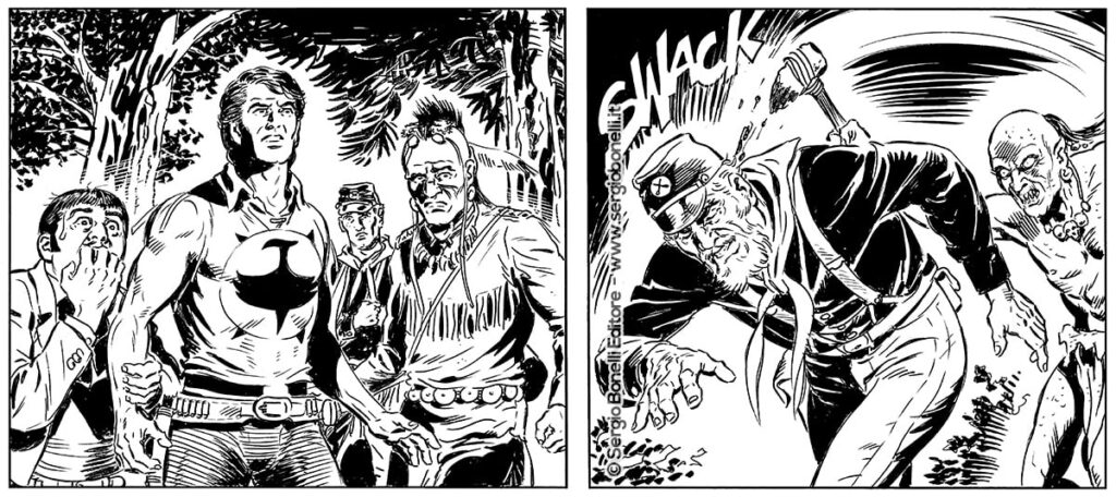 Al gruppo costituito da Zagor, Cico, i soldati che scortano il bandito Lowell e Sara Rowland, si unisce un giovane guerriero Oneida, Ombra Silenziosa, che si trova nella zona per indagare sulla sparizione di alcuni cacciatori della sua tribù. Ma ecco che dal nulla si materializzano creature misteriose e luminescenti... le stesse di cui parla il taccuino lasciato in una baracca di minatori da uno degli occupanti, anch'essi scomparsi.