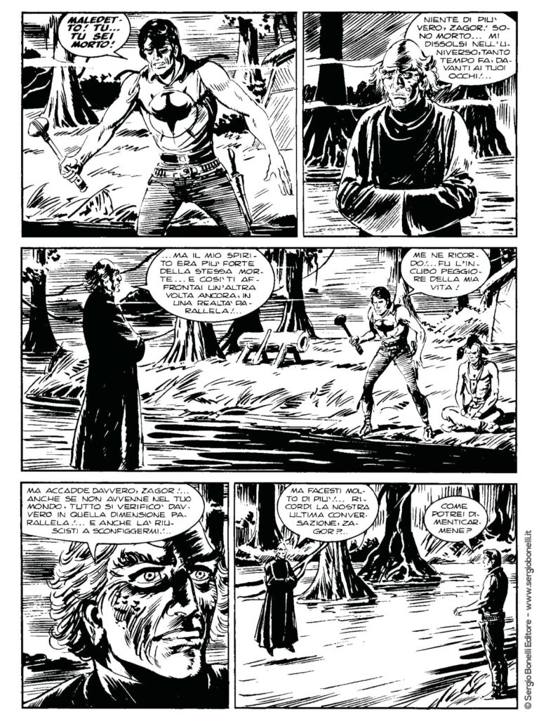 Continua lo shoppingDalla cima del Monte Naatani giungono echi nefasti: Hellingen, è vivo! Zagor dovrà affrontare nuovamente la sua nemesi, questa volta con l'aiuto di numerosi compagni e dello scrittore Edgar Allan Poe, agente dell'organizzazione governativa di Altrove, assieme al quale lotterà per porre ancora una volta un freno ai proposito diabolici del "mad doctor".