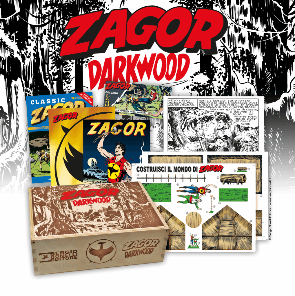 Continua lo shoppingUna scatola di legno di betulla realizzata in Italia, contenente l'edizione regolare di Zagor Classic n.1, la variant con copertina di Alessandro Piccinelli, la variant "Darkwood" con copertina dorata, l'edizione anastatica della prima striscia di Zagor, una stampa esclusiva con la prima apparizione di Zagor e il set per costruire il mondo dello Spirito con la Scure. Tutto poggiato su un letto di paglia di prima qualità.