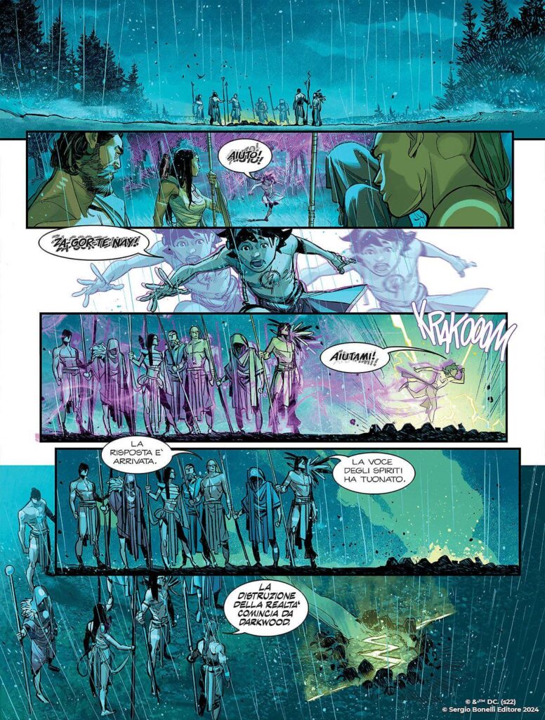 Sarà un inequivocabile messaggio, inciso sul petto del povero Kohana, a far sì che l'eroe di Central City, Flash, attraversi mondi e realtà per giungere nella foresta di Darkwood, pronto a unire le sue forze con quelle dello Spirito con la Scure: Zagor!