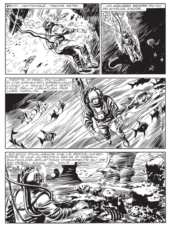 “Digging” Bill, che ha ritrovato per caso la mappa del luogo nel quale, secoli prima, era affondata la nave del capitano Maldonado, coinvolge Zagor e Cico nella ricerca del tesoro dell’Esmeralda. Per individuare il relitto, Zagor indossa una tuta da palombaro e scende nei fondali marini, addentrandosi in un nuovo, affascinante universo. Il Re di Darkwood e i suoi amici dovranno affrontare i pirati di Capitan Serpente, discendenti di quelli affrontati centinaia di anni prima dal capitano dell'Esmeralda, dando vita a un epico e indimenticabile duello dall’esito imprevisto… ma ancor più sorprendente sarà il contenuto del forziere recuperato dal relitto!...