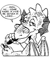 Pur essendo un'accanita animalista, non ho mai capito come abbia fatto il topo volante a installarsi nel mio appartamento. A onor del vero, Harvey non è un topo volante, ma un draghetto senziente e super-intelligente, frutto di un esperimento genetico che avrebbe dovuto creare degli esseri perfetti dotati di cultura propria. Harvey perfetto, in realtà, non lo è assolutamente: prima di tutto, perché è miope, secondo perché è un rompiscatole saputello e approfittatore. Grande rubacuori, ha un'intensa vita sentimentale con draghette di ogni tipo (le bollette del telefono che devo pagare sono roventi come i suoi amori!). Il suo sport preferito è spiare May e la sottoscritta mentre facciamo la doccia. Nonostante tutto, però, il topo volante ha i suoi pregi: cucina divinamente, si presta volentieri a collaborare alle indagini e, in alcune occasioni, mi ha persino salvato la vita. Lui sostiene che lo fa perché io, in un certo senso, sono la sua mamma (come io lo sia diventata non mi è chiaro, qualcuno a suo tempo parlò di "imprinting": io penso che sia solo una definizione gentile per mascherare la fregatura di averlo in casa). Ma, a prescindere da tutto, lui fa parte della mia strana famiglia ed è un ottimo sfogo per le crisi di nervi. In sostanza, la casa sembrerebbe vuota senza di lui!